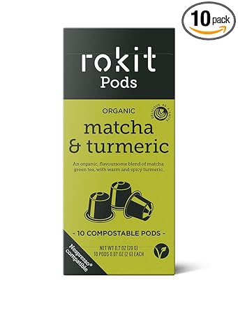 Rokit Pods Japanese Matcha Turmeric Golden Tea Pods Compostable Capsules Nespresso Coffee